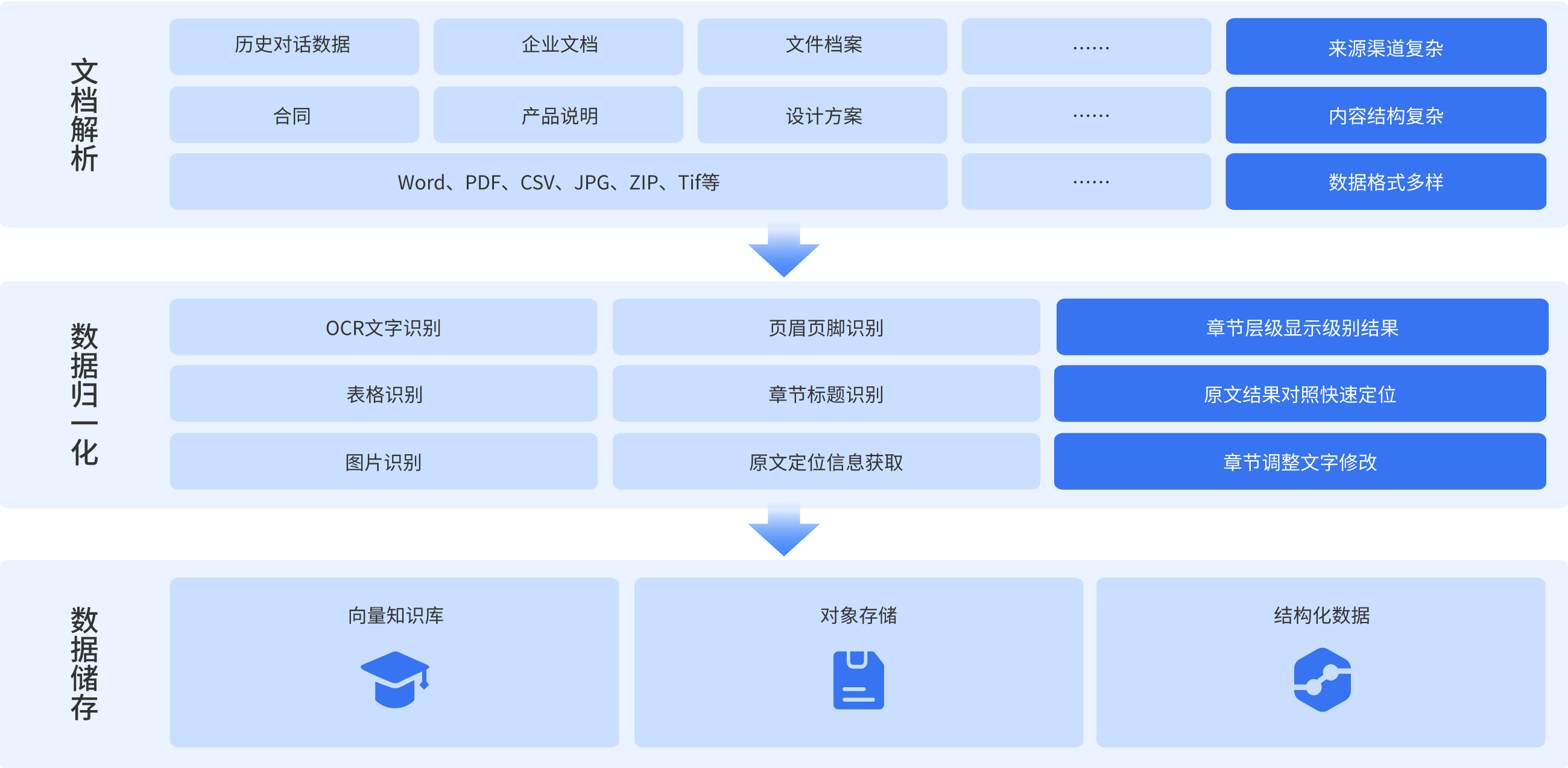 大模型数据治理专为海量知识数据管理而设计的高性能解决精东传媒入口,为大模型增量化训练及微调训练提供基础输出处理支撑。支持一键解析多源异构数据集,内置AI模型实现文档内逐词句的精准检索、定位及调用,提供高度可扩展的接口,采用多元高精度OCR技术,支持自动解析原文结构及内容。